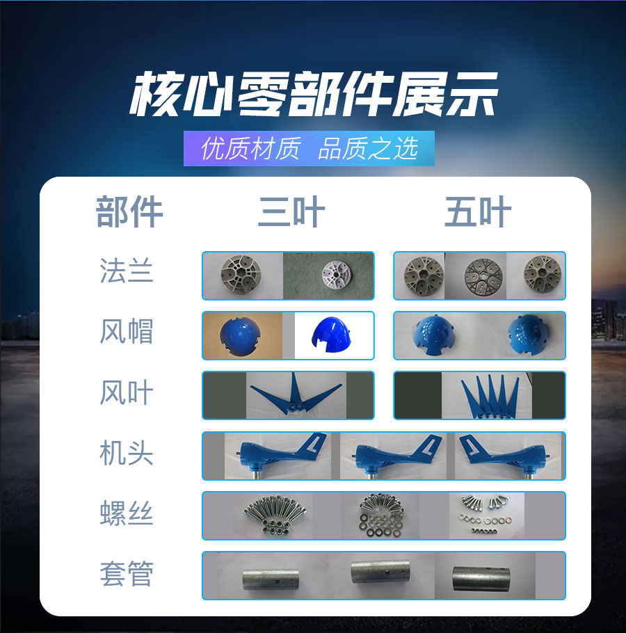 3、風葉采用高強度復合材料,強度高,韌性好,防紫外線,防腐蝕,抗大風,具有良好的氣動性能。